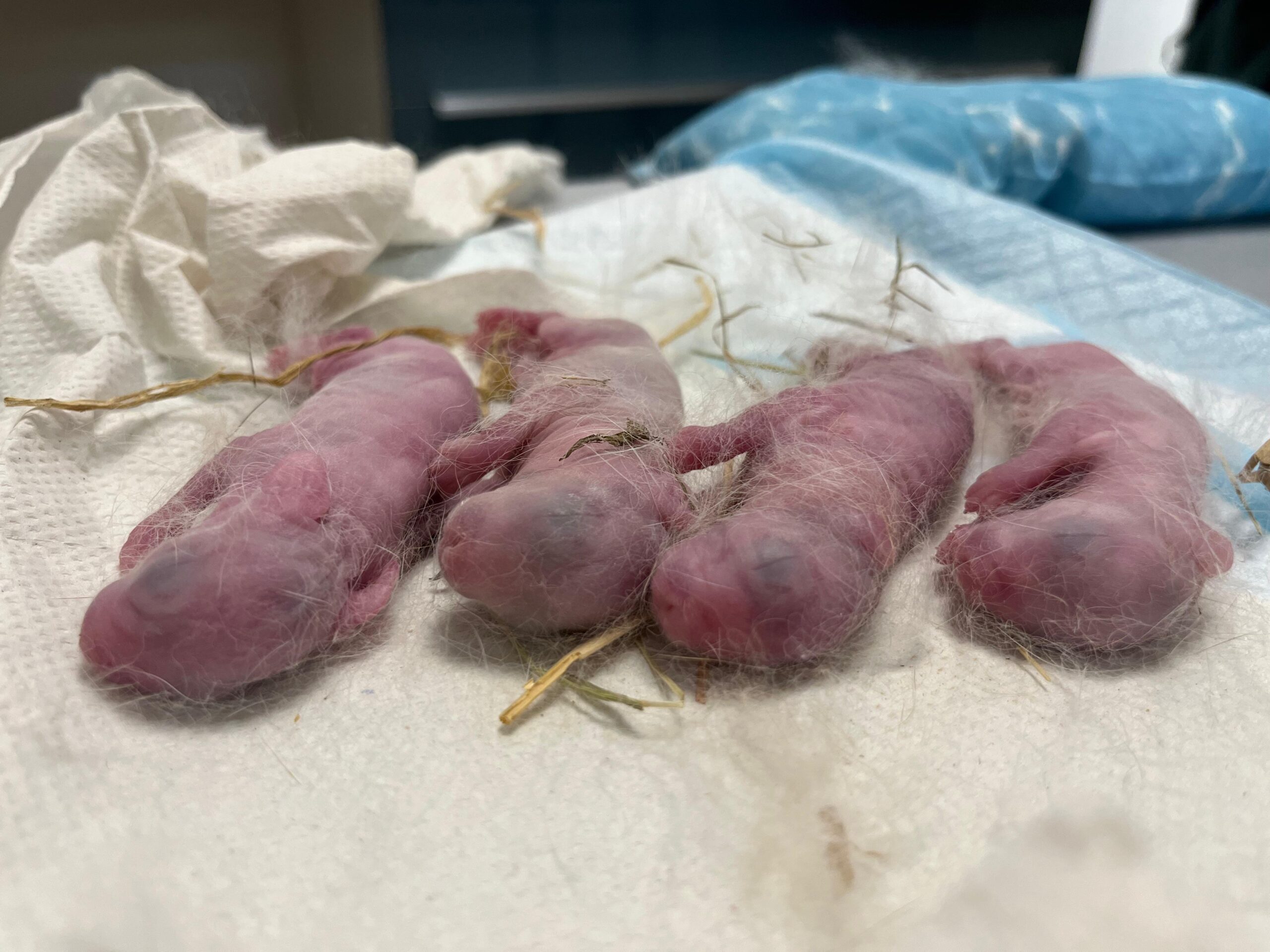 An diesem Tag waren wir fassungslos und zugleich enttäuscht, dass wir wieder mal von den Menschen angelogen worden sind. Eines der Weibchen war Trächtig. 7 kleine Babys haben das Licht der Welt entdeckt. Drei haben den Überlebenskampf kurz nach der Geburt in der Nacht schon verloren. Eines ist auf dem Weg zum Tierarzt verstorben. Im Auto habe ich noch versucht sie zu wärmen, aber auch diese kleinen Babys haben keine Überlebenschance gehabt. Dieses Leid hätte man den 7 kleinen Seelchen ersparen können. Damit Mami keine Schmerzen bei der Produktion der Muttermilch-Milchstau hat, wurde uns geraten ihr Petersilie zum fressen anzubieten.